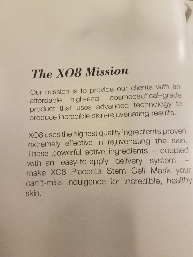 Disclaimer: Rose Laudisio the CEO and Founder of xo8 Placenta Stem Cell Mask gave me the mask to try for free. I am not being paid to do this review.